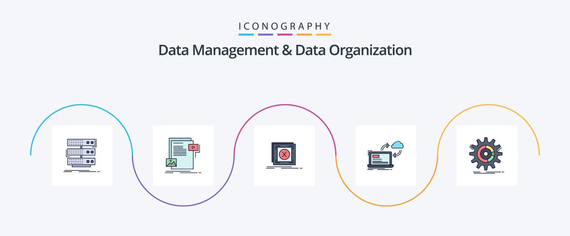 Data Management And Data Organization Line Filled Flat 5 Icon Pack Including data. sync. media. server. message vector