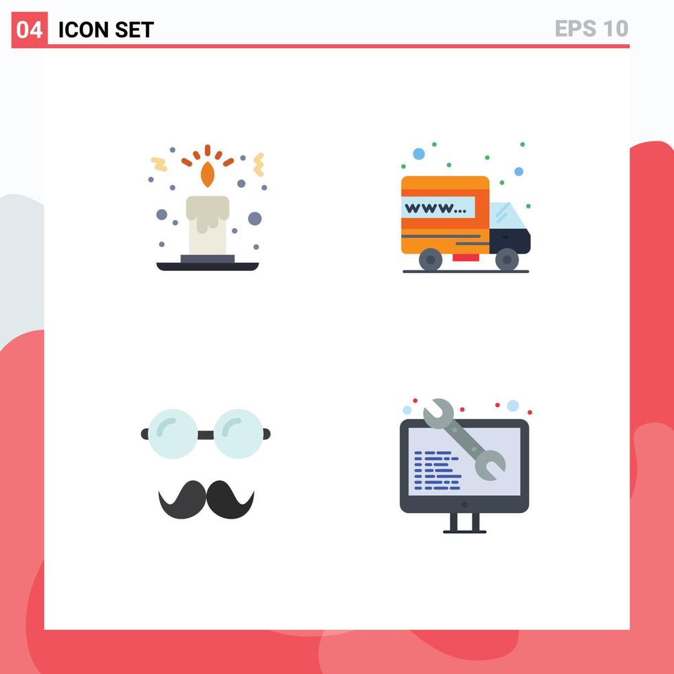 Group of 4 Flat Icons Signs and Symbols for candle glasses hosting domain coding Editable Vector Design Elements Free Vector