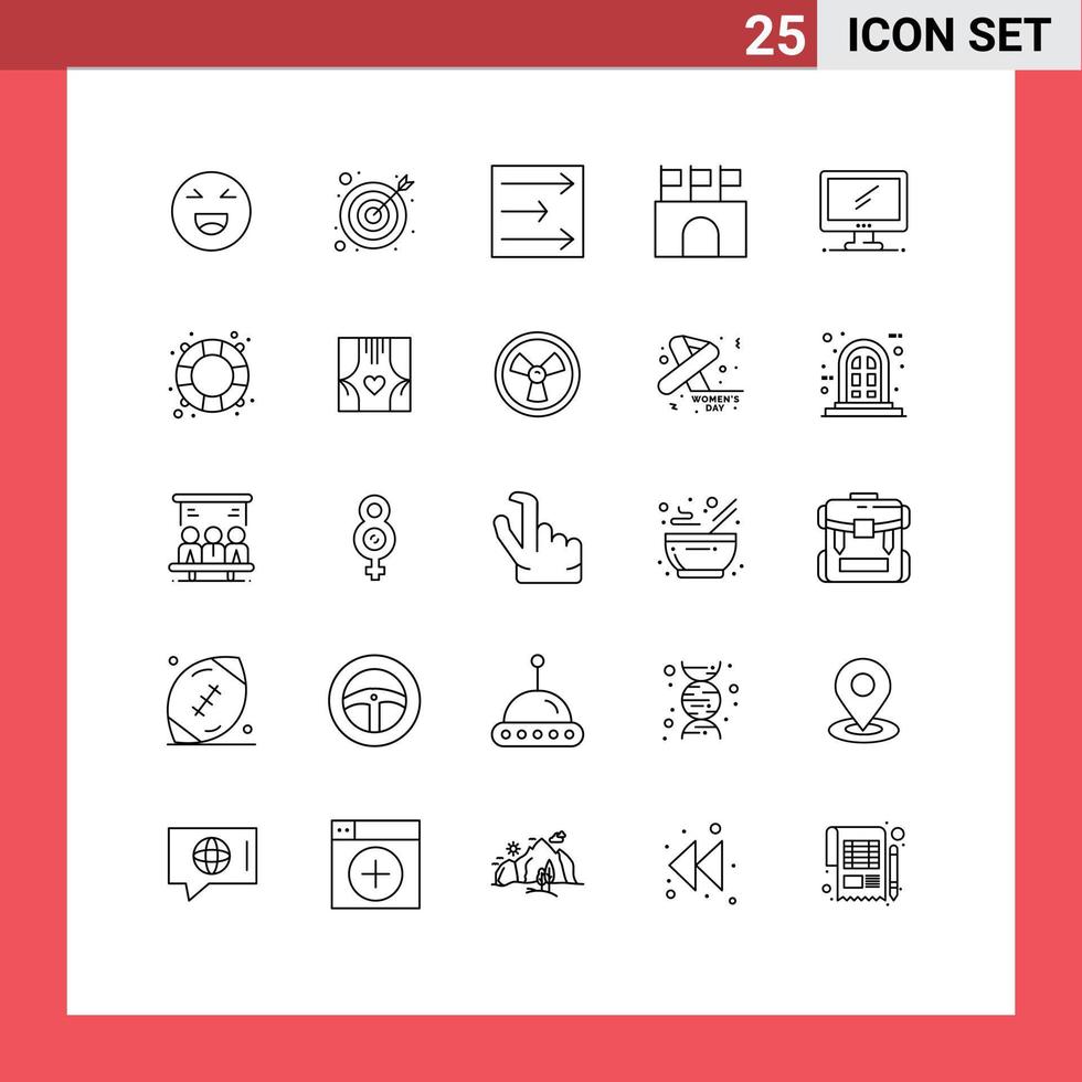 25 Universal Lines Set for Web and Mobile Applications device computer weather stadium public Editable Vector Design Elements