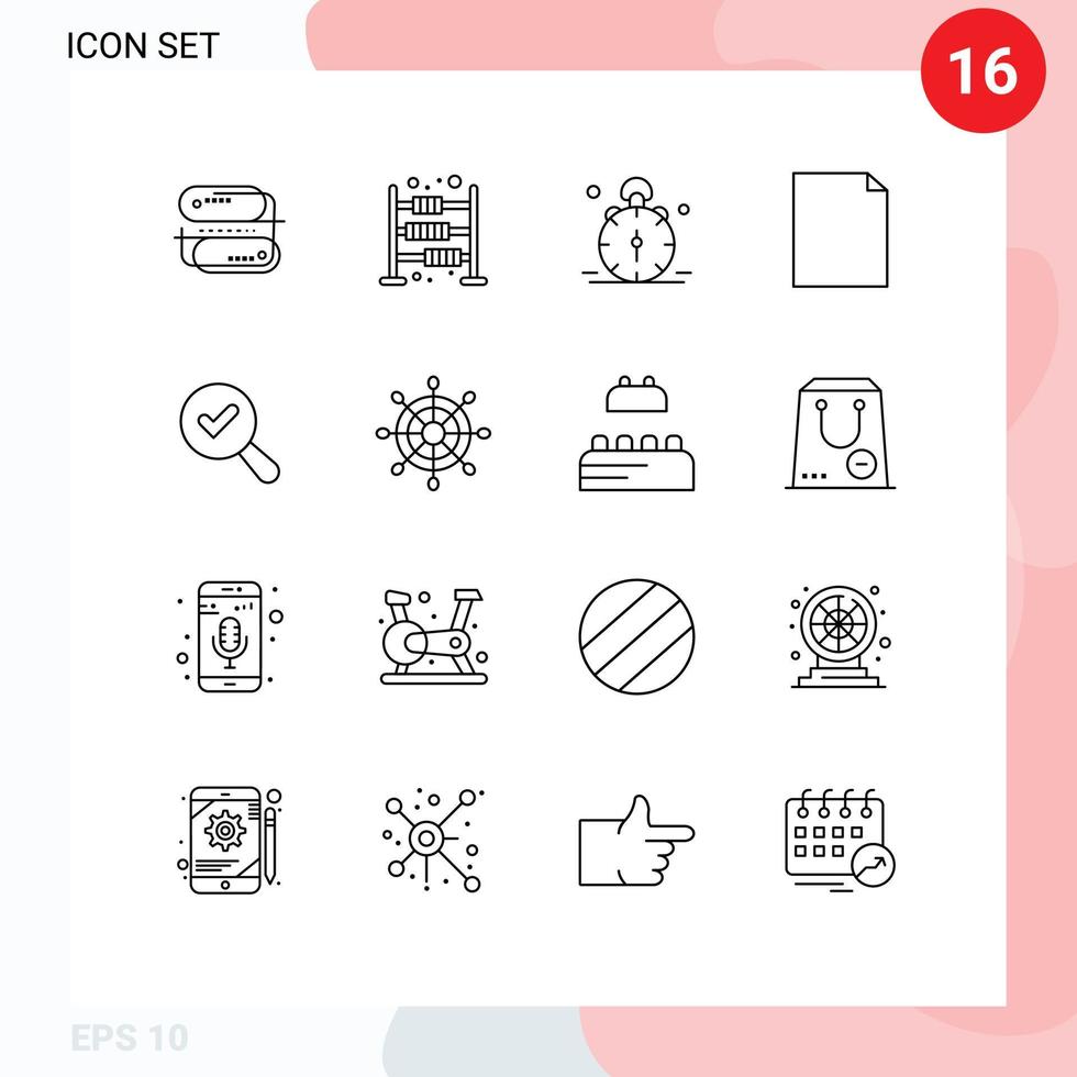 Pictogram Set of 16 Simple Outlines of search page alarm file alert Editable Vector Design Elements