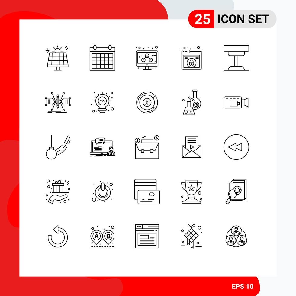 25 Universal Lines Set for Web and Mobile Applications desk security date web design Editable Vector Design Elements