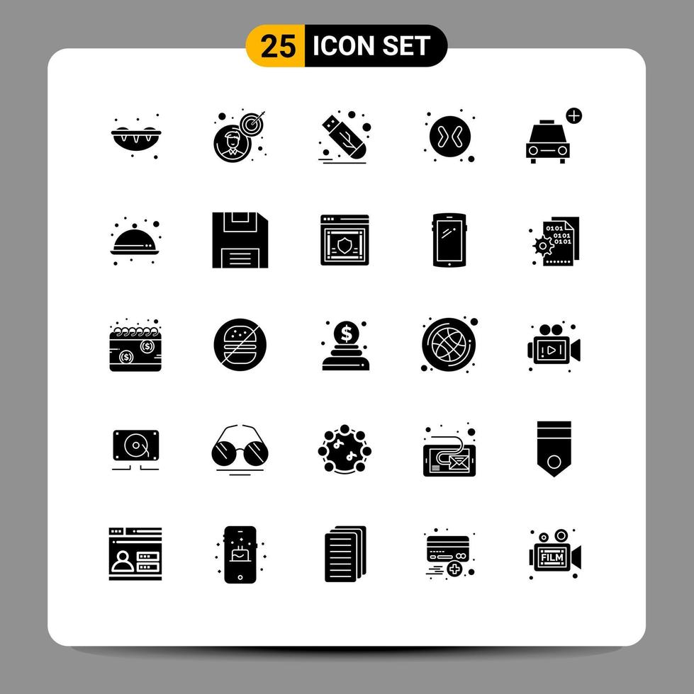 25 Universal Solid Glyphs Set for Web and Mobile Applications vehicles plus flash car change arrows Editable Vector Design Elements