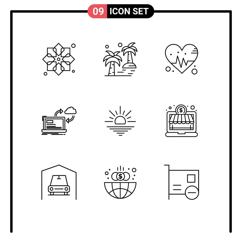 Set of 9 Modern UI Icons Symbols Signs for arrows data beach processing beat Editable Vector Design Elements