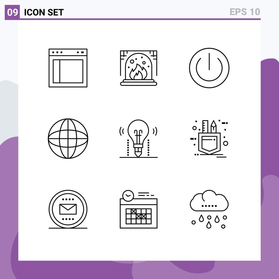 Modern Set of 9 Outlines and symbols such as globe earth button devices power Editable Vector Design Elements