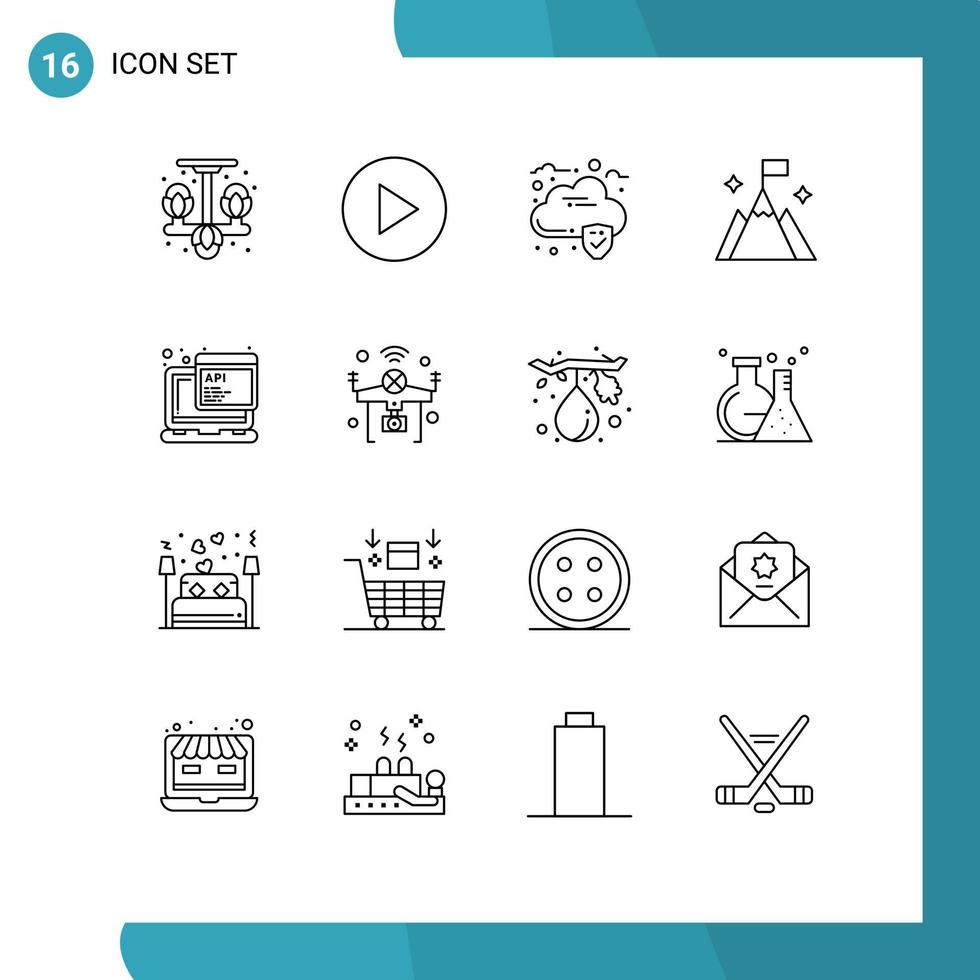 Pack of 16 creative Outlines of drone script security javascript interface Editable Vector Design Elements Free Vector