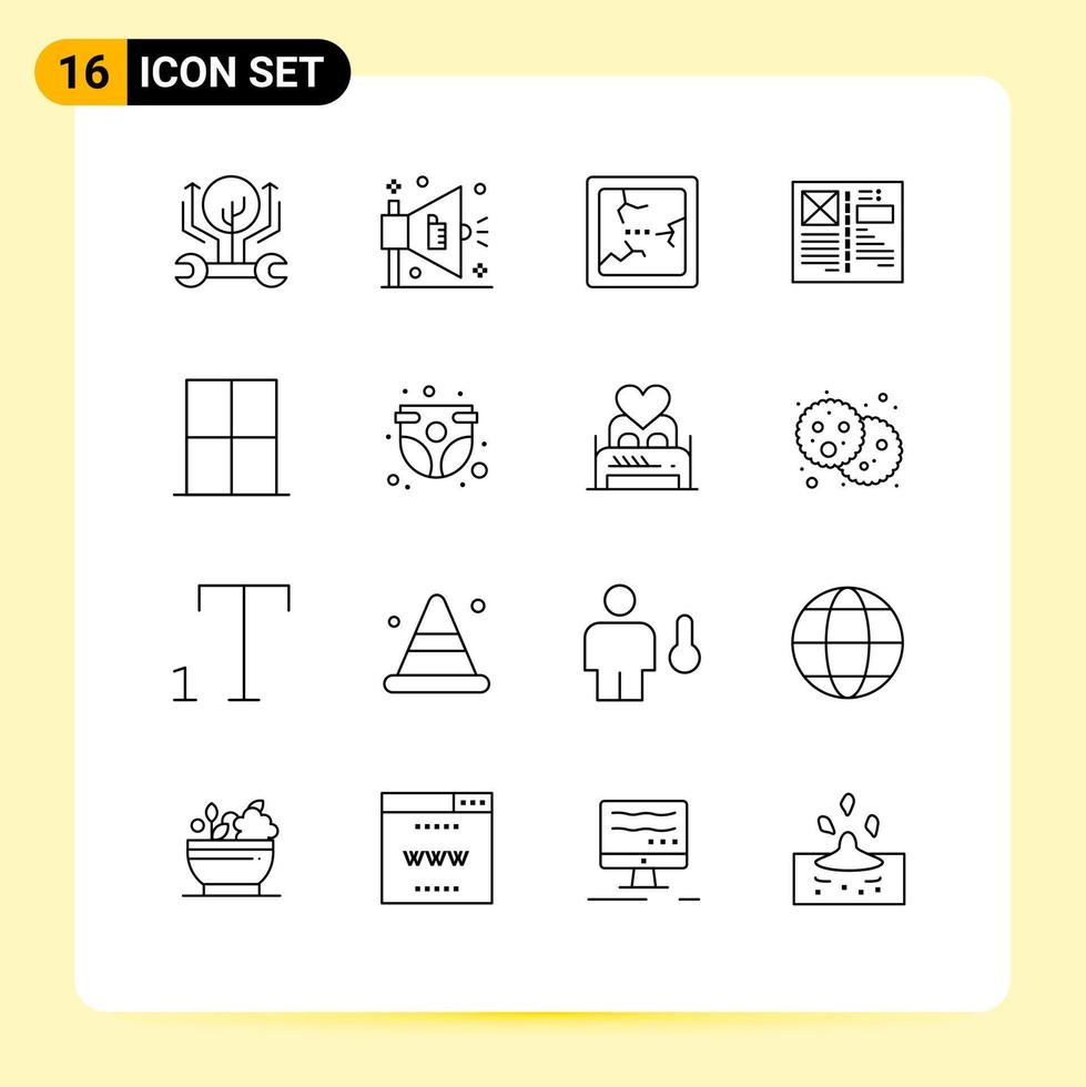 Group of 16 Outlines Signs and Symbols for home layout broken grid browser Editable Vector Design Elements Free Vector and Free SVG