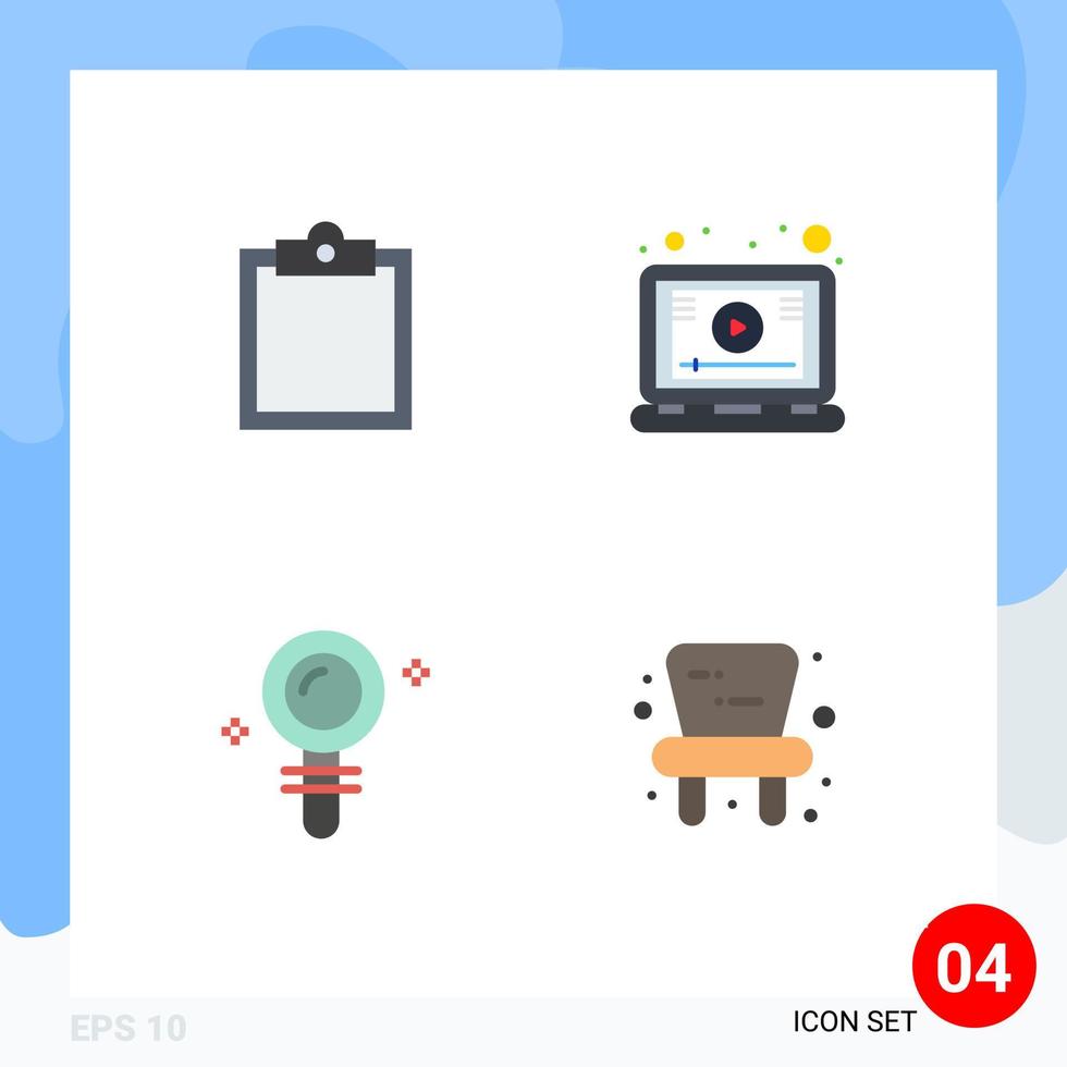 Pack of 4 Modern Flat Icons Signs and Symbols for Web Print Media such as buffer find lesson screen baby Editable Vector Design Elements
