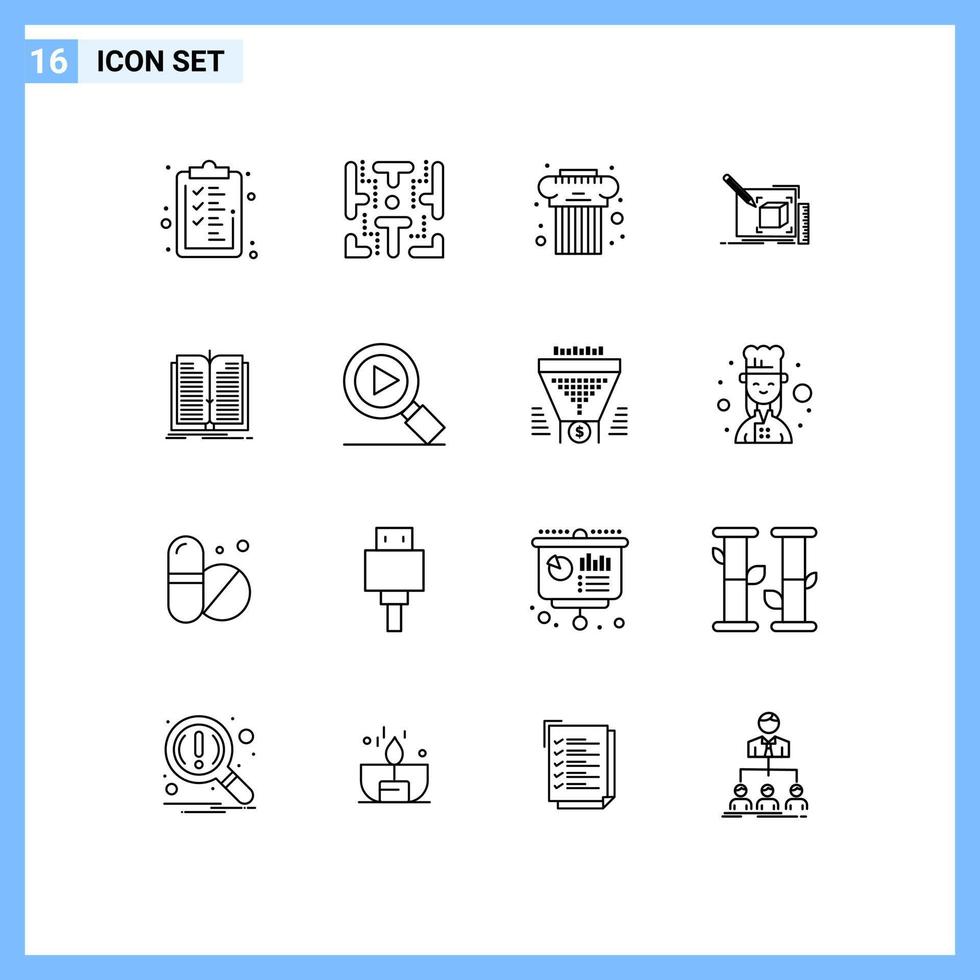 Outline Pack of 16 Universal Symbols of application line architecture sketch drawing Editable Vector Design Elements