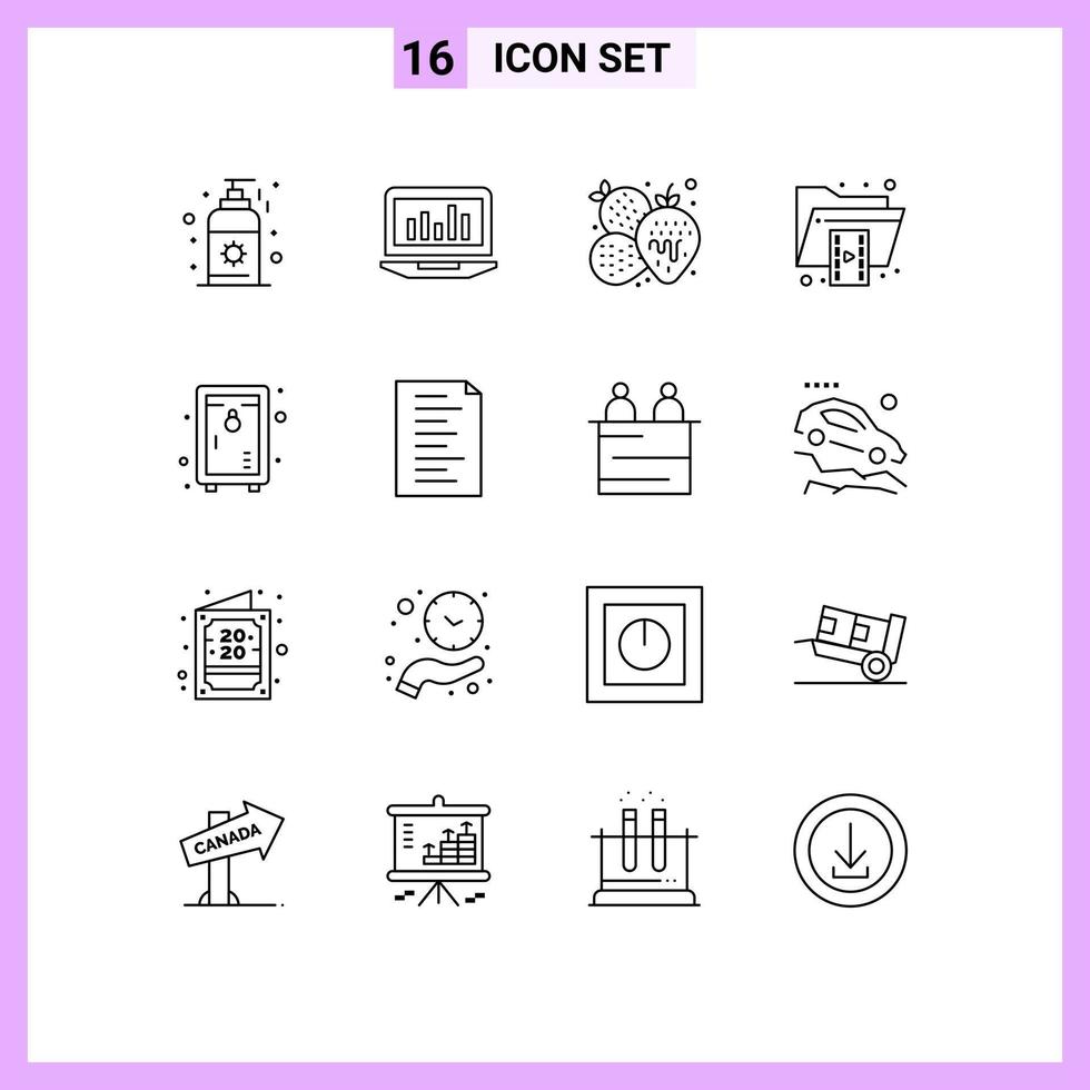 Outline Pack of 16 Universal Symbols of locker format pineapple folder document Editable Vector Design Elements