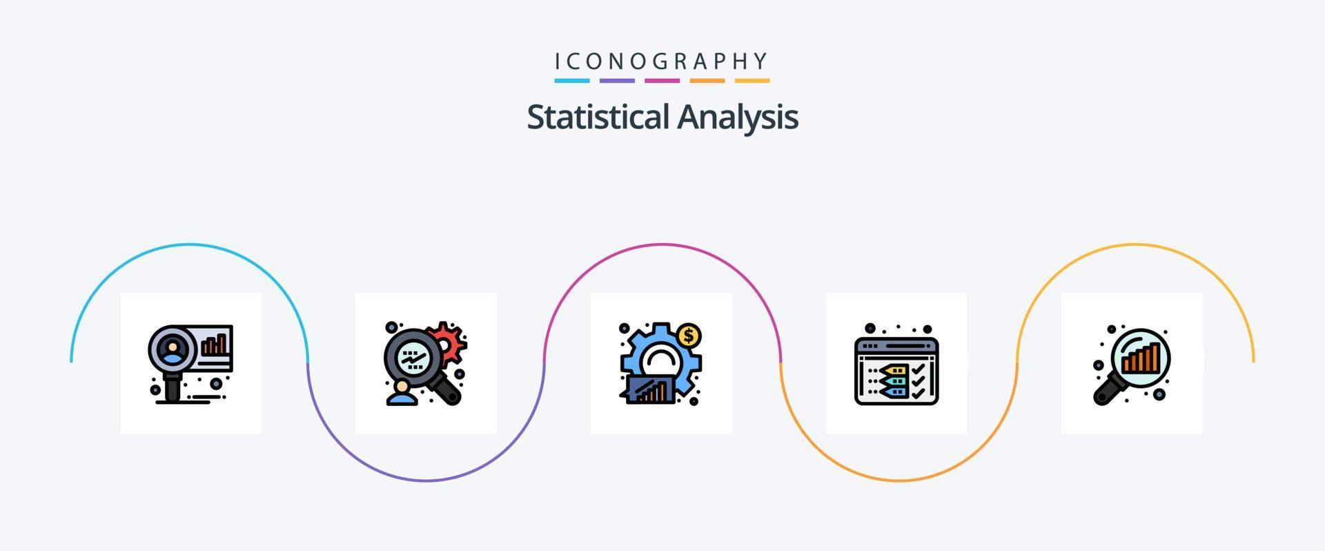 Statistical Analysis Line Filled Flat 5 Icon Pack Including graph magnifying. data analyzing. business. web. development vector