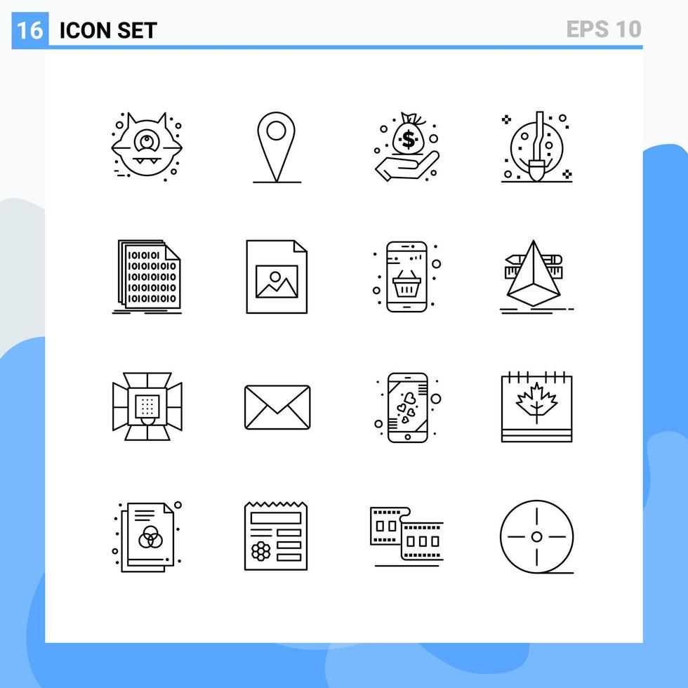 Mobile Interface Outline Set of 16 Pictograms of data code hand binary moon Editable Vector Design Elements