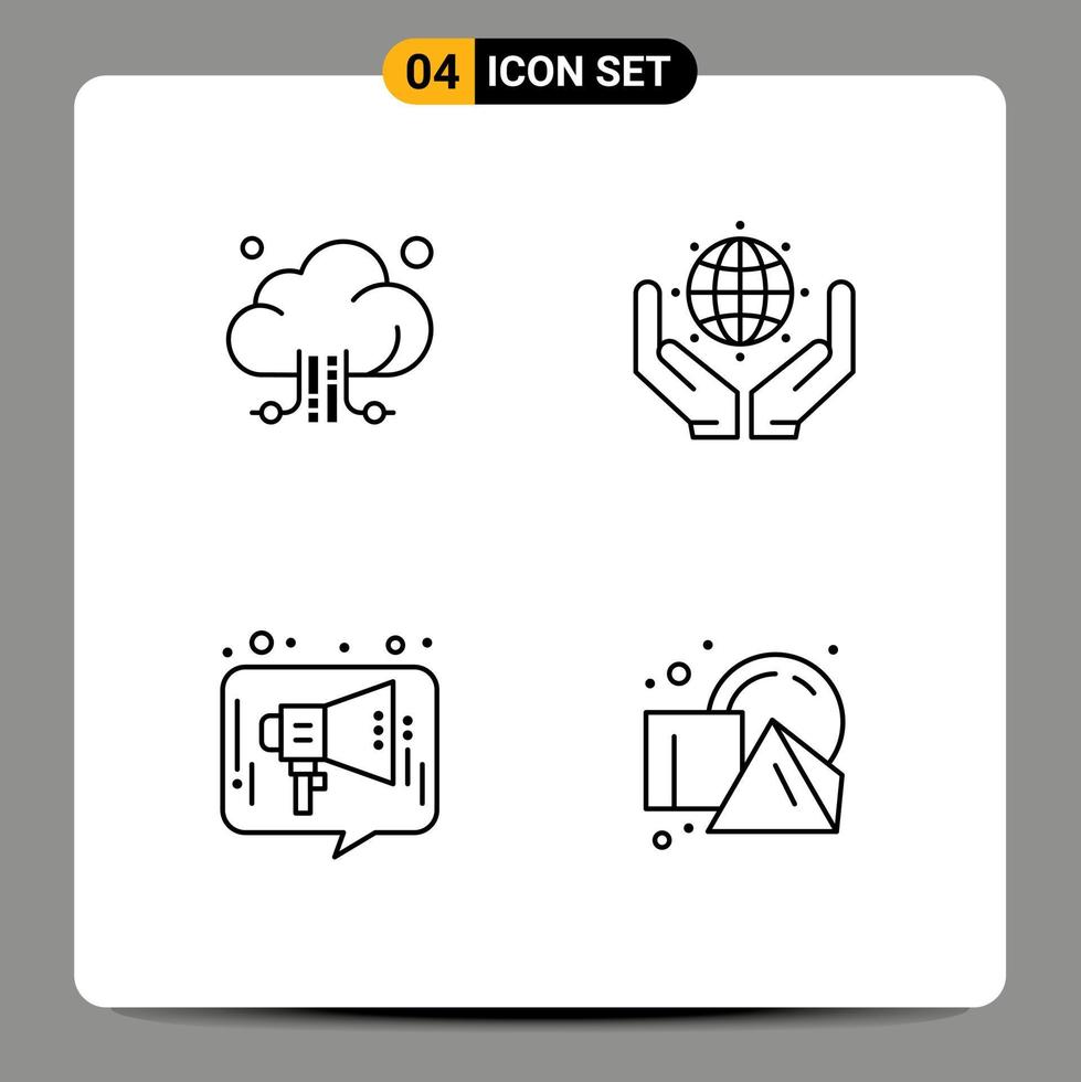4 Line concept for Websites Mobile and Apps cloud advertising technology save the world media Editable Vector Design Elements