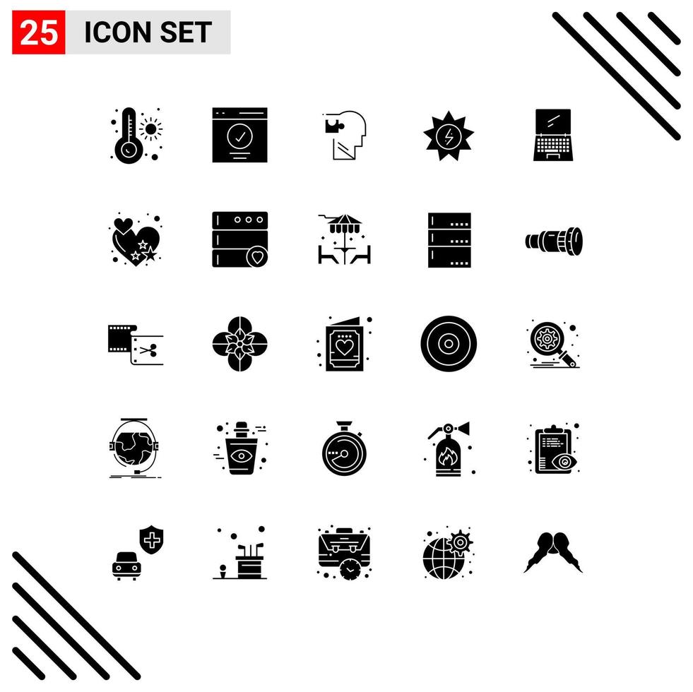 Set of 25 Vector Solid Glyphs on Grid for computer energy human solar solution Editable Vector Design Elements