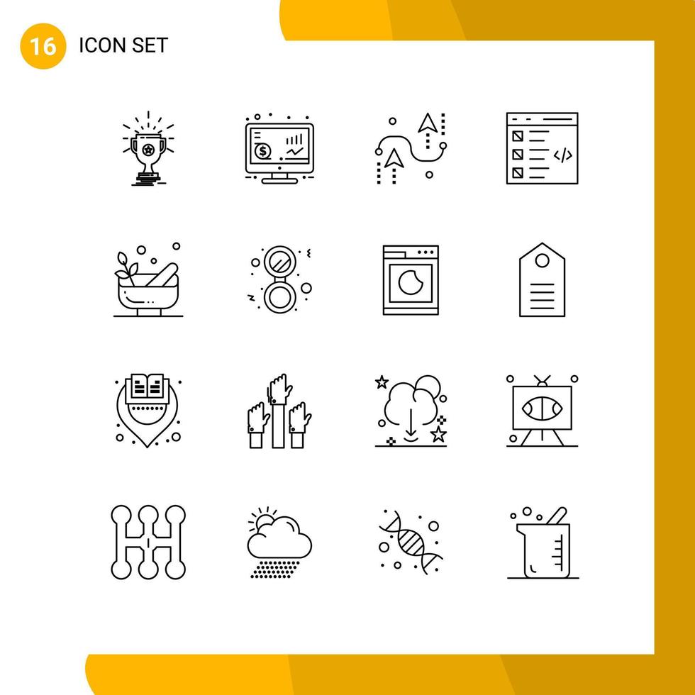 16 Outline concept for Websites Mobile and Apps development coding money check development Editable Vector Design Elements