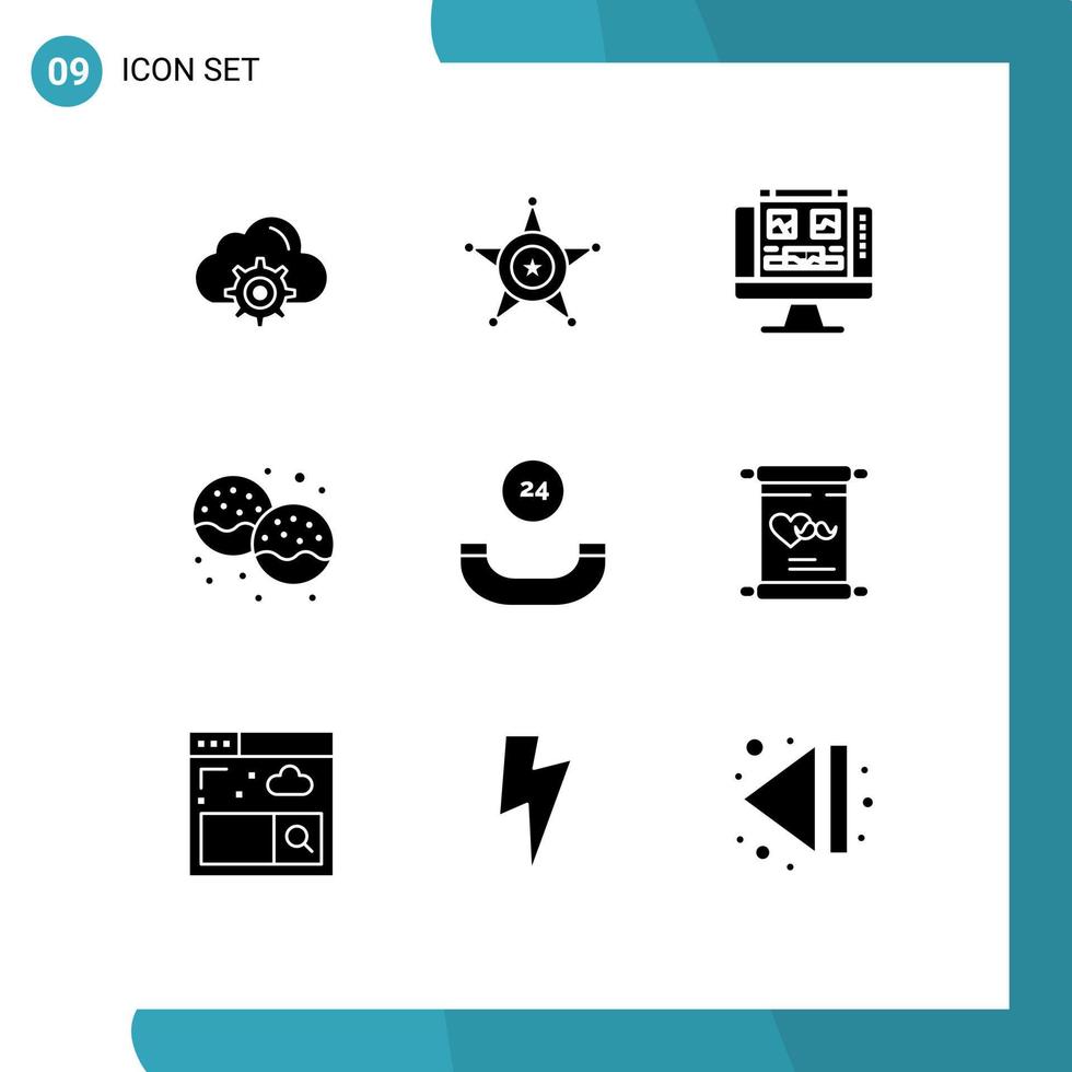 Pictogram Set of 9 Simple Solid Glyphs of all time eat gallery donut bakery Editable Vector Design Elements