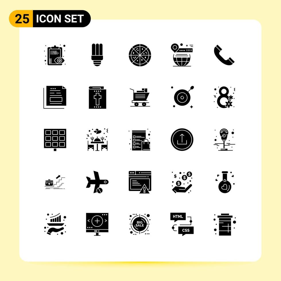 Editable Vector Line Pack of 25 Simple Solid Glyphs of data phone pizza call globe Editable Vector Design Elements