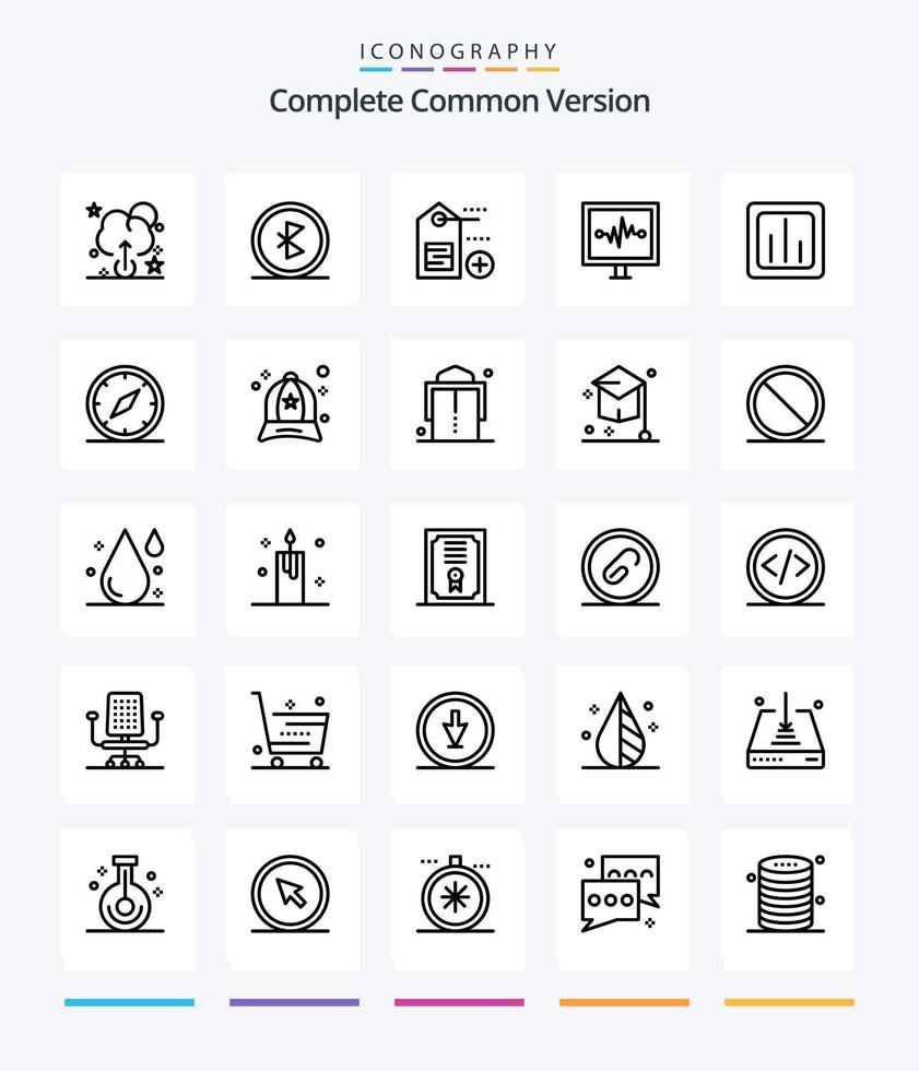 Creative Complete Common Version 25 OutLine icon pack  Such As report. chart. label. analytics. pulse vector