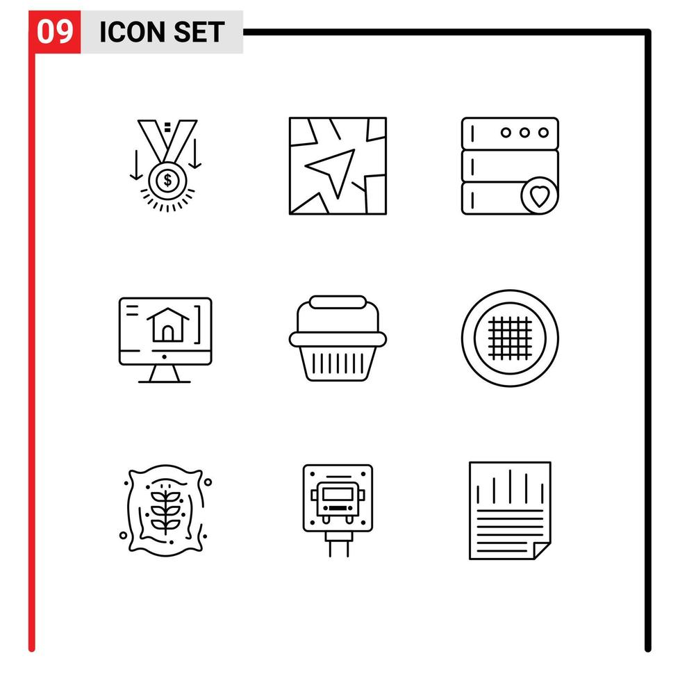 Set of 9 Modern UI Icons Symbols Signs for trolley cart database basket home Editable Vector Design Elements