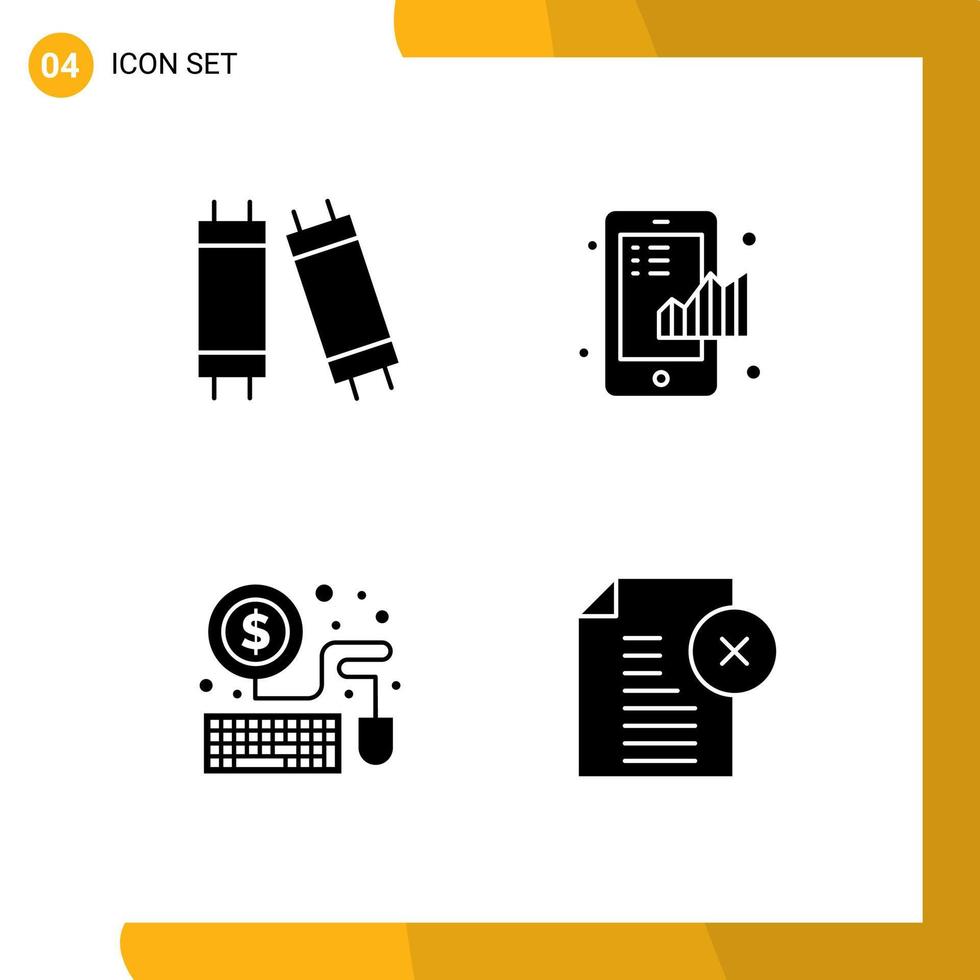 Stock Vector Icon Pack of 4 Line Signs and Symbols for halogen laptop business graph delete Editable Vector Design Elements