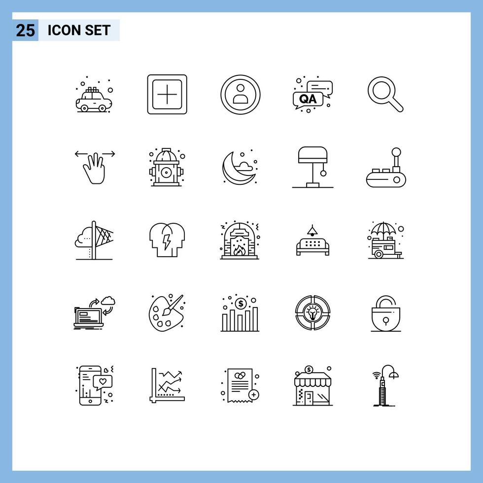 Modern Set of 25 Lines Pictograph of ui expanded plus question answer Editable Vector Design Elements