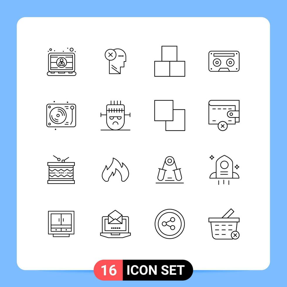 Set of 16 Modern UI Icons Symbols Signs for audio toy human constructor blocks Editable Vector Design Elements