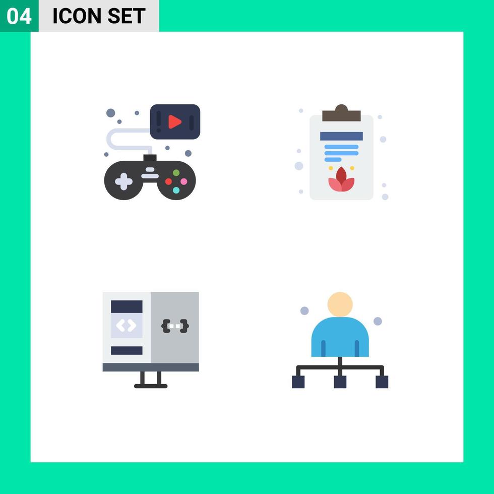 Pack of 4 Modern Flat Icons Signs and Symbols for Web Print Media such as controller computer video game lotus development Editable Vector Design Elements