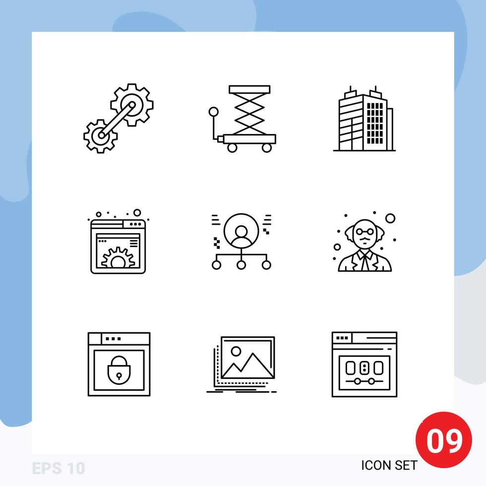 Universal Icon Symbols Group of 9 Modern Outlines of employee web building management document Editable Vector Design Elements