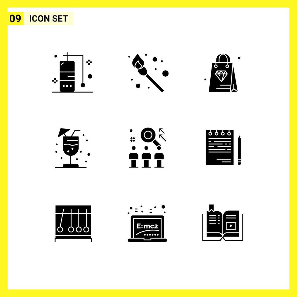 Pictogram Set of 9 Simple Solid Glyphs of business user diamond team rescource Editable Vector Design Elements Free Vector