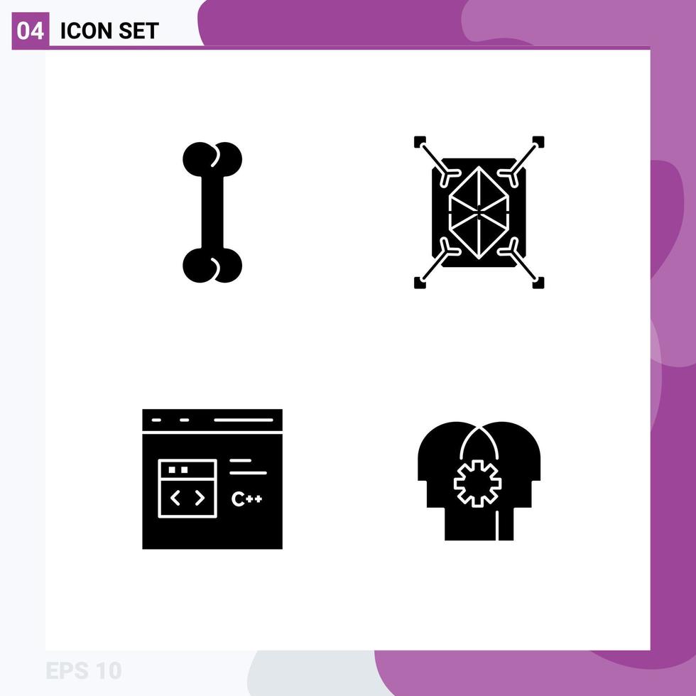4 Universal Solid Glyph Signs Symbols of bone develop prototyping c brain Editable Vector Design Elements
