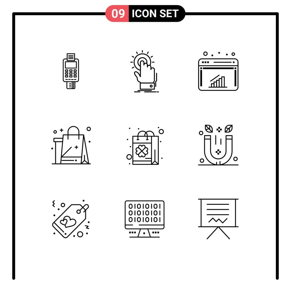 9 Universal Outlines Set for Web and Mobile Applications bag web click internet chart Editable Vector Design Elements