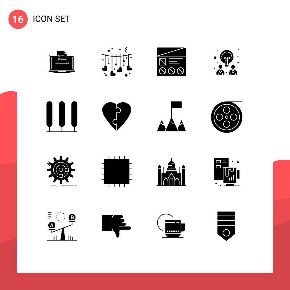 Mobile Interface Solid Glyph Set of 16 Pictograms of design usability heart ui lo Editable Vector Design Elements