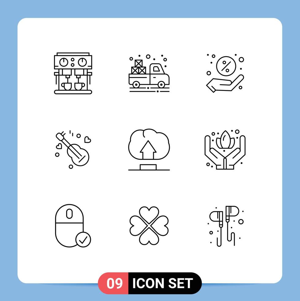Mobile Interface Outline Set of 9 Pictograms of user interface discount love song Editable Vector Design Elements