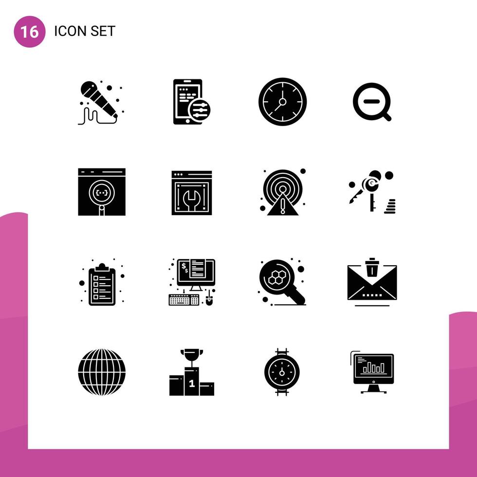 Universal Icon Symbols Group of 16 Modern Solid Glyphs of develop browser timer app remove Editable Vector Design Elements