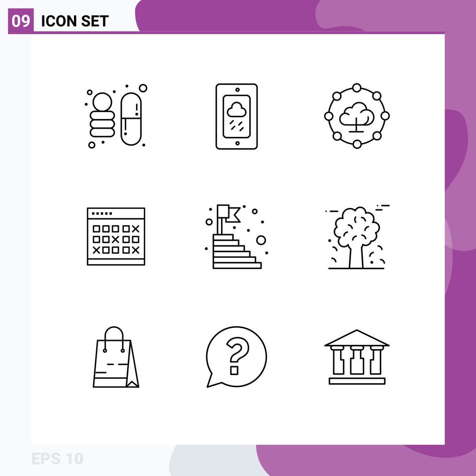 Modern Set of 9 Outlines Pictograph of age schedule network month event Editable Vector Design Elements