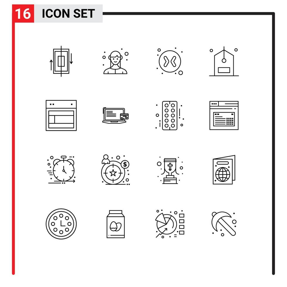 16 Universal Outlines Set for Web and Mobile Applications design discount business counter check Editable Vector Design Elements