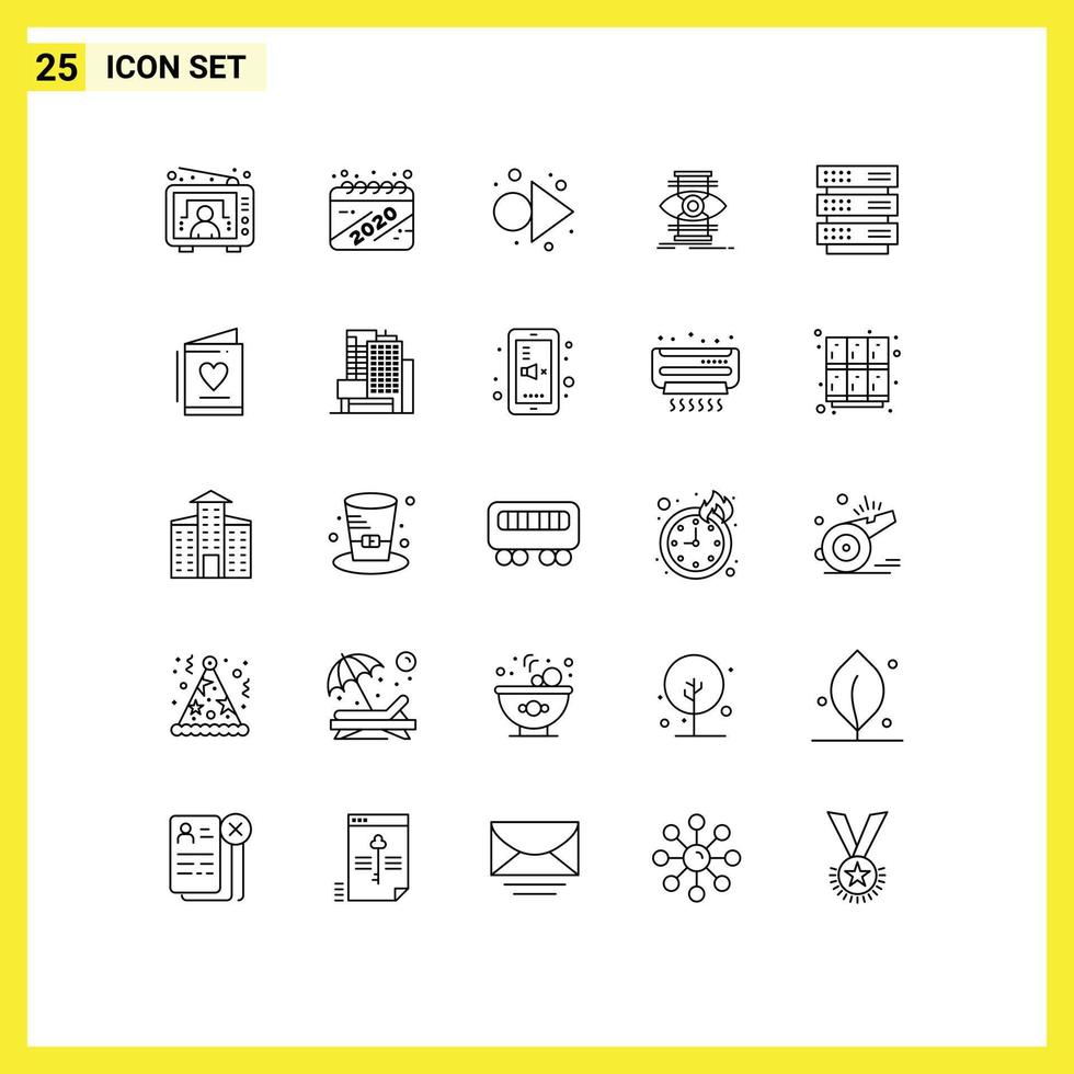 Mobile Interface Line Set of 25 Pictograms of storage server arrow optimize success Editable Vector Design Elements Free Vector