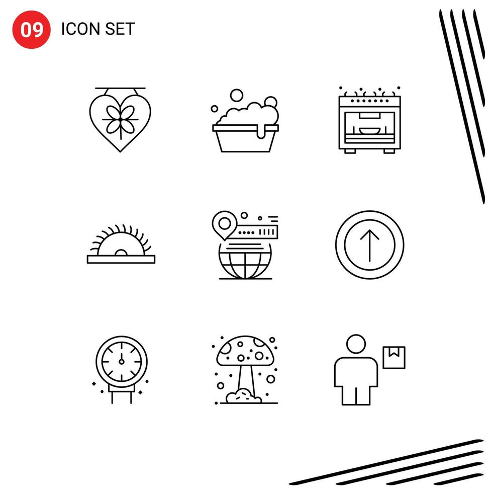 Pictogram Set of 9 Simple Outlines of globe pin microwave map tool Editable Vector Design Elements