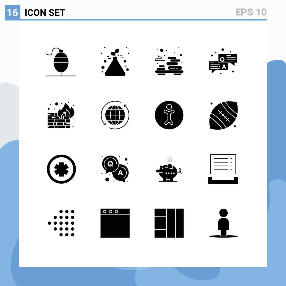Set of 16 Modern UI Icons Symbols Signs for security fire spa chat qa Editable Vector Design Elements