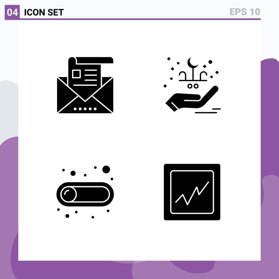 4 Solid Glyph concept for Websites Mobile and Apps address off envelope lettering switch Editable Vector Design Elements
