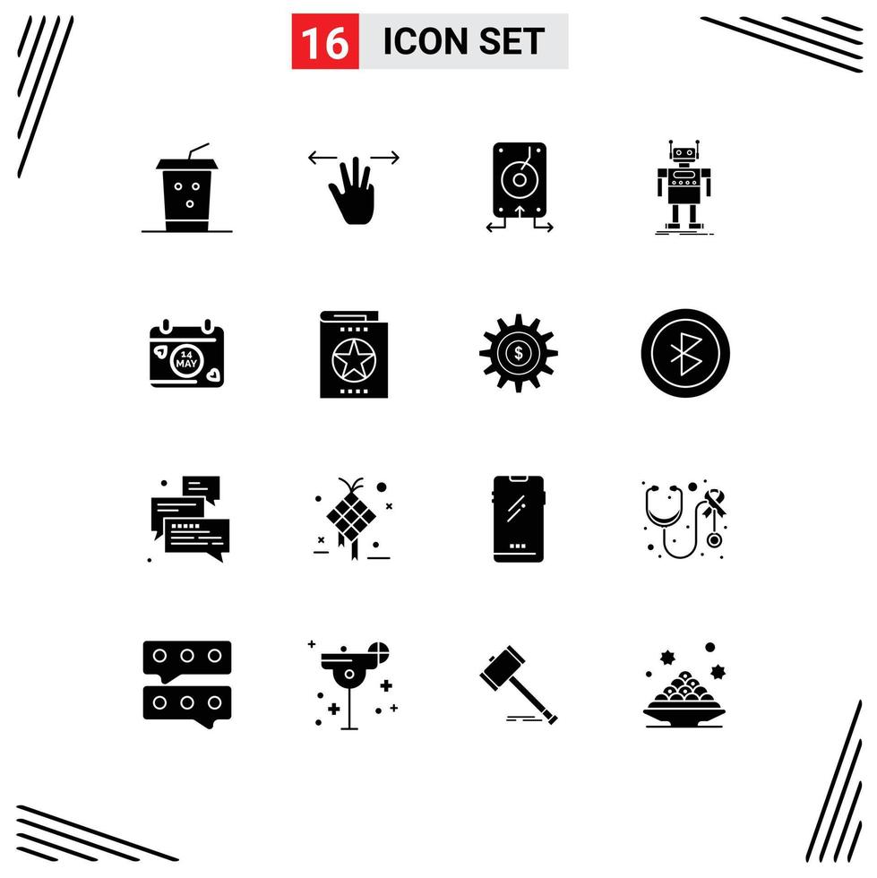 Pack of 16 Modern Solid Glyphs Signs and Symbols for Web Print Media such as calendar bot data artificial robot Editable Vector Design Elements