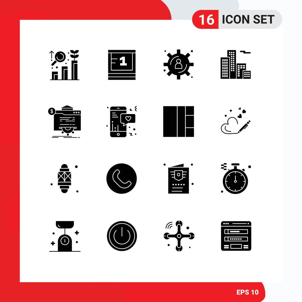16 Solid Glyph concept for Websites Mobile and Apps technology progress big data development seo building Editable Vector Design Elements Free Vector