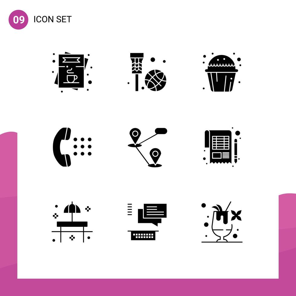 Set of 9 Modern UI Icons Symbols Signs for phone call net apps cup cake Editable Vector Design Elements