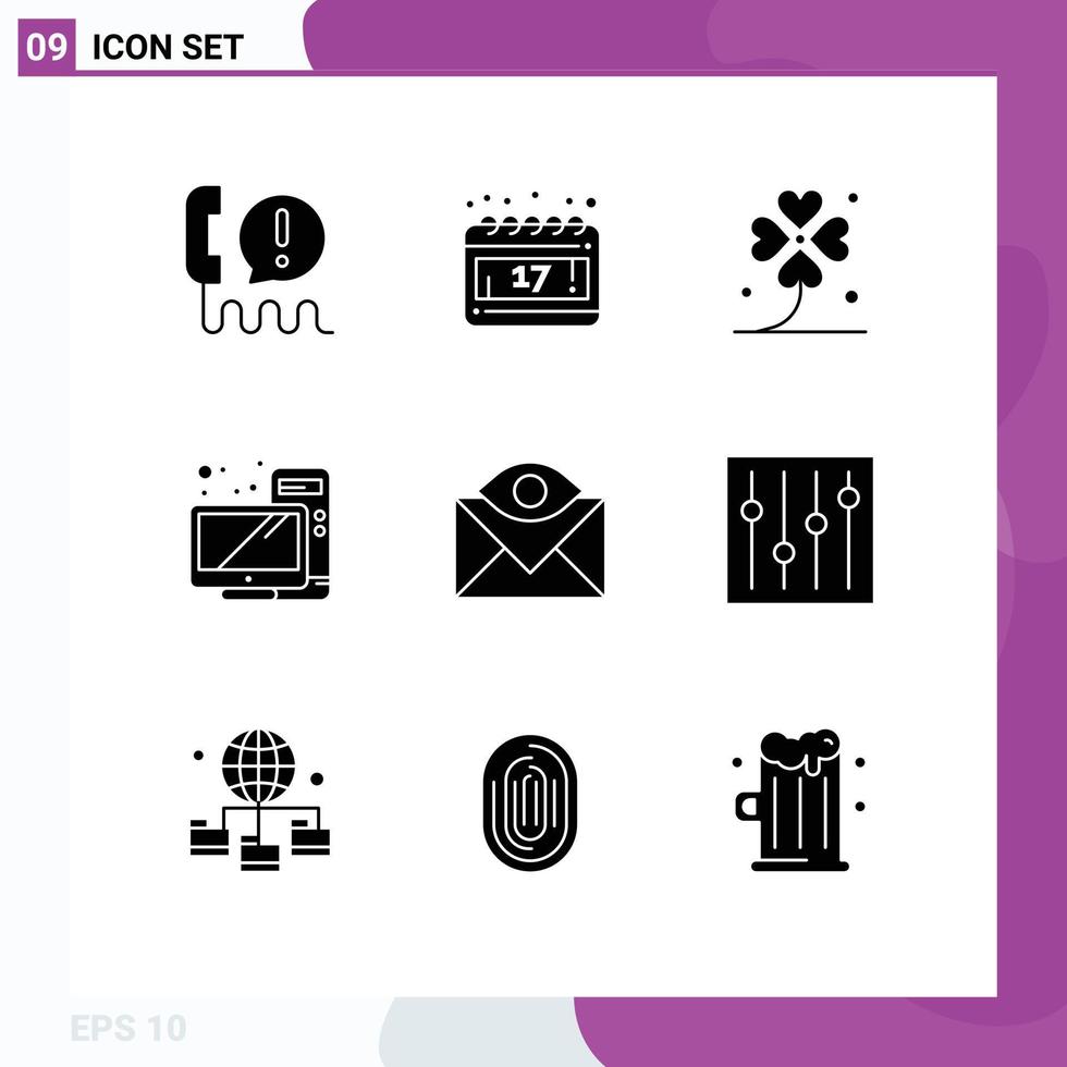 9 User Interface Solid Glyph Pack of modern Signs and Symbols of communication hardware clover desktop lucky Editable Vector Design Elements