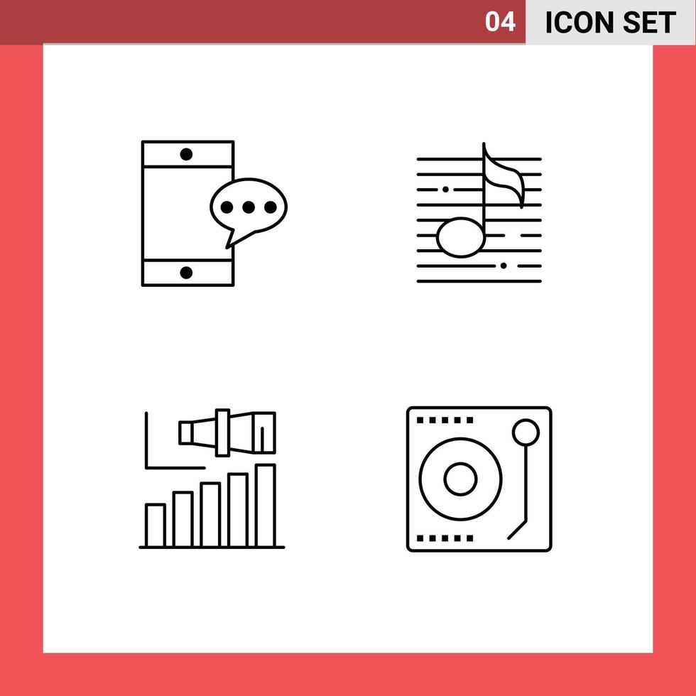 Set of 4 Modern UI Icons Symbols Signs for mobile long nodes sound term Editable Vector Design Elements