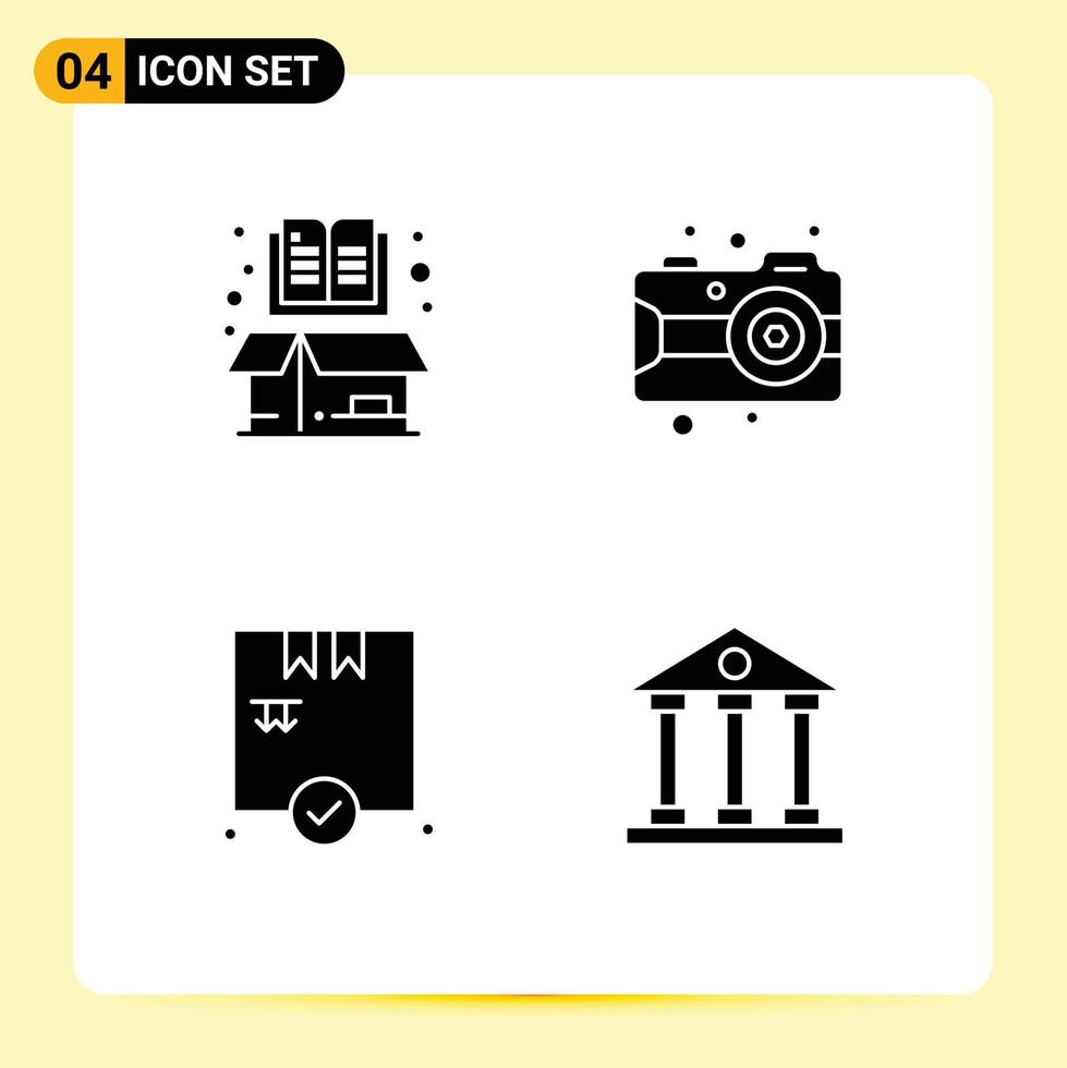 Group of 4 Modern Solid Glyphs Set for book shopping item arts check Editable Vector Design Elements Free Vector and Free SVG