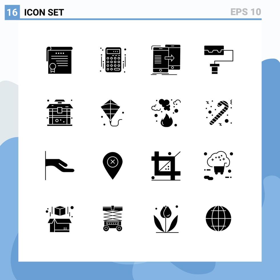 Set of 16 Commercial Solid Glyphs pack for china architecture data roller syncing Editable Vector Design Elements