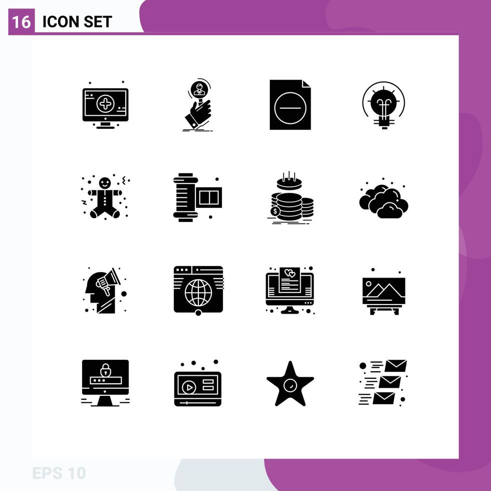 16 Universal Solid Glyphs Set for Web and Mobile Applications gingerbread men christmas delete solution energy Editable Vector Design Elements