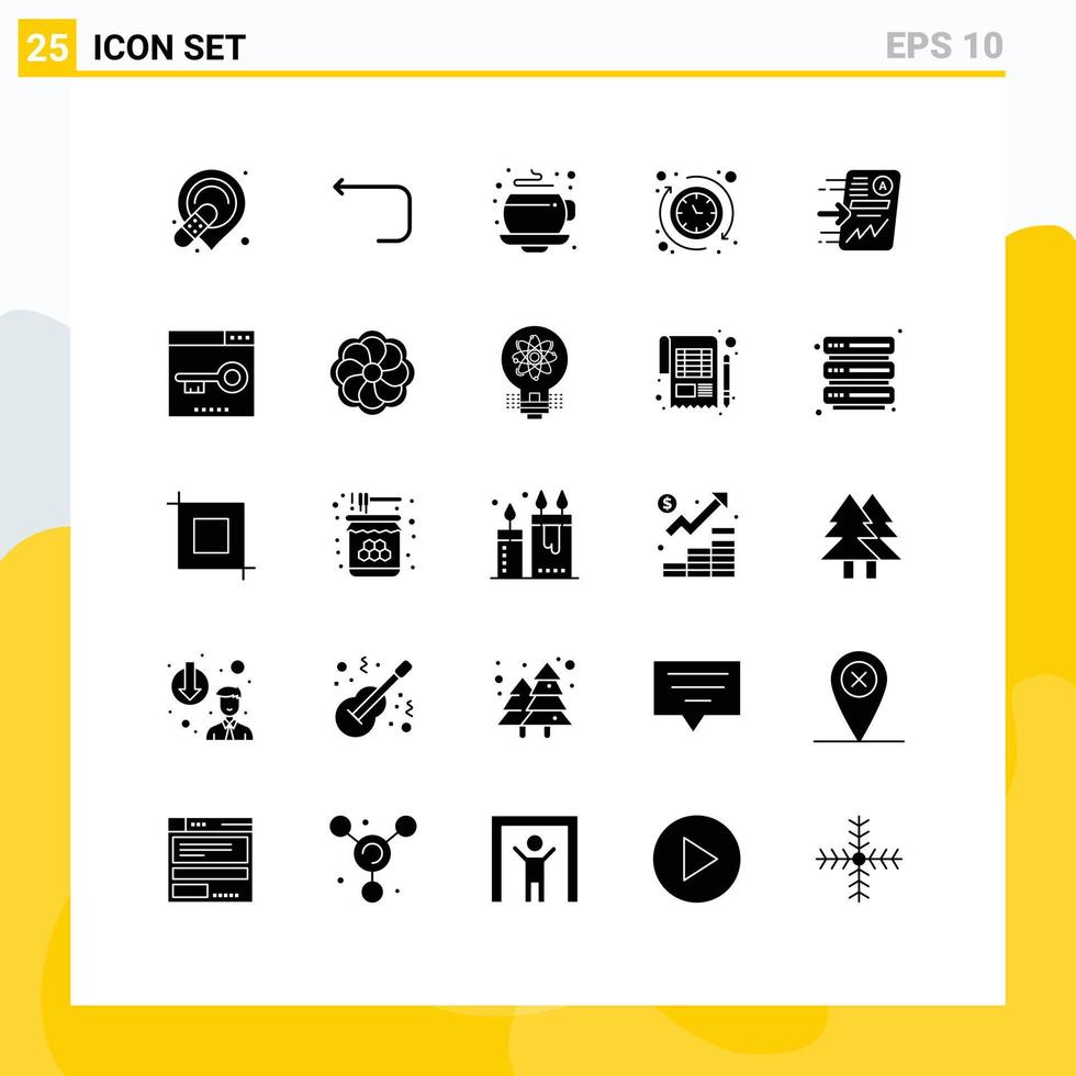 Modern Set of 25 Solid Glyphs Pictograph of report file coffee the clock Editable Vector Design Elements