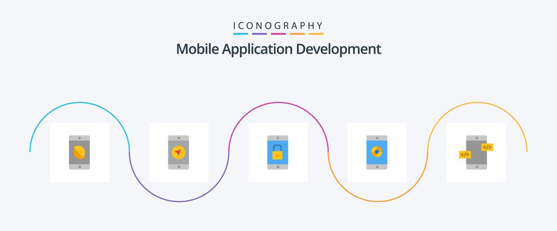 Mobile Application Development Flat 5 Icon Pack Including arrows. target. lock. mobile application. application vector