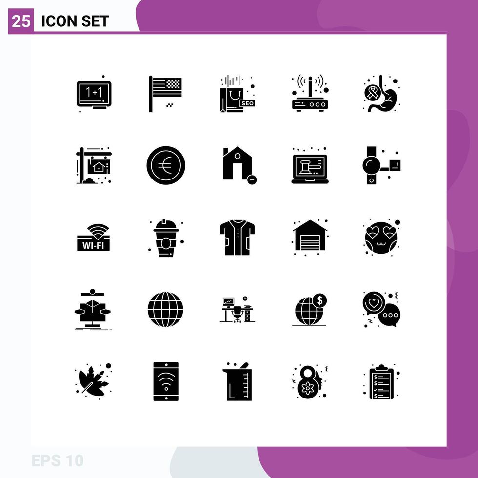 Pictogram Set of 25 Simple Solid Glyphs of connection router fall modem seo Editable Vector Design Elements